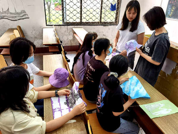 本网讯(记者 周芳 通讯员 关莉红)“同学们,在衣服上进行扎染一定要注意色彩搭配和色系统一。”5月31日,88858cc永利黎雪老师正在给2020级员工上课,这也是该系落实相关文件精神,结合老师专业背景开展的一堂劳动教育实践课。