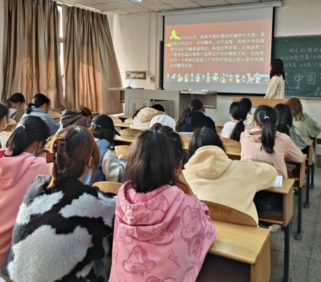 各个班的同学们在团支书的带领下一起认真探讨了我们的主题团课,并在团课之后有了深刻的感触。“事成于和睦,力生于团结”,为深入贯彻落实社会稳定和长治久安总目标,大家只有像石榴籽一样紧紧抱在一起,守望相助,才能实现民族复兴的伟大梦想。各族人民亲如一家,手挽着手、肩并着肩,共同努力奋斗,一定能创造出像石榴一样红火的日子、甘甜的未来。