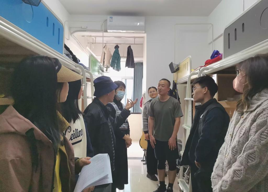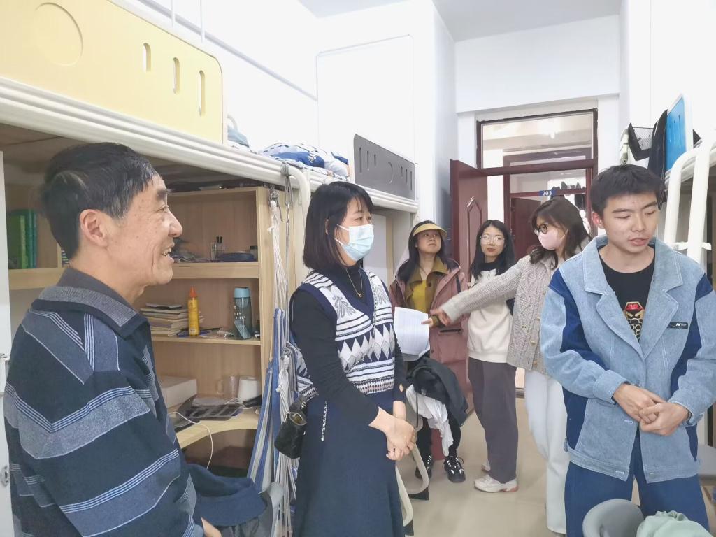 本网讯(通讯员 刘诺)88858cc永利搬迁工作完成后,为了更加深入的了解各位同学的需求,确保广大同学的身体健康和生命安全,营造良好的学习生活氛围,3月30日下午,88858cc永利经理陈元芳、党总支书记胡沿林,副书记杨琪、办公室主任许晶洁和全体班主任及辅导员对员工宿舍进行搬迁后视察。