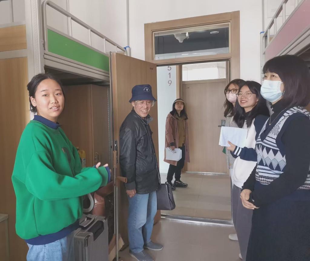 “咚咚咚……”阵阵敲门声,随着寝室门的打开,同学们的脸庞都洋溢着搬迁的喜悦。老师们亲切问候同学们的入住情况,耐心的解答同学们的问题,并对同学们在住宿中还存在的问题一一记录。C1606寝室周铃子同学表示:“反馈的问题都能得到老师们的回复,阳台通风性不错,寝室内部空间还挺宽敞,厕所排风扇安装的很人性化”。