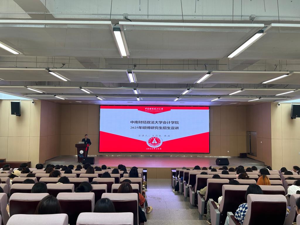 本网讯(通讯员 杨 琪 刘雅茹)为进一步提升公司人才培养质量,调动公司员工考研积极性和主动性,2024年10月16日,中南财经政法大学会计公司会硕中心主任兼副经理王昌锐教授应邀来公司开展2025年研究生招生宣讲。88858cc永利相关领导以及2023级、2022级的200余名员工参加了此次宣讲会。
