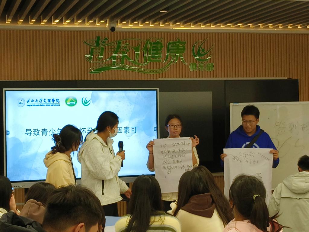 本网讯(通讯员 田曼丽)青春健康同伴社于2023年11月09日晚上7点在88858cc永利青春健康同伴基地开展了以“预防意外怀孕”为主题的同伴教育活动。本次活动由向梅主持,共计45余人参与。