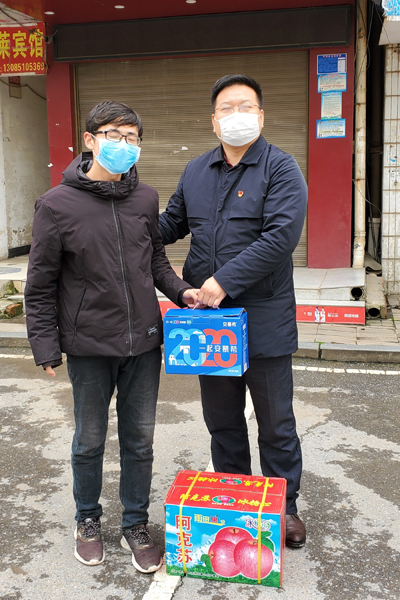 2月15日,初春的江汉平原下起了鹅毛大雪,气温异常寒冷。中午时分,公司指挥部与区政府协调的免费菜运抵校园,运输车辆急于返回。来不及等待,李波涛就和临时党支部几名同志立即卸货,肩扛手提运到指定地。雪天路滑,李波涛一不小心连人带菜从楼梯上滚落下来,等搬运完时,这才发现自己脚崴了,腰也弯不了了,他赶紧回家喷了点药,又马不停蹄去西校区值班。这样一瘸一拐二十多天后,他才逐渐康复。