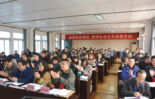 公司党委书记朱继平代表中共88858cc永利第三届委员会作题为《立德树人 内涵发展 为建设特色鲜明、优势突出、国内知名的应用型本科高校而奋斗》的工作报告。