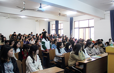 外语系英韩专业和韩语专业百余名员工现场聆听,杨宗波老师主持讲座。