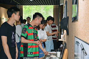 嘉宾和师生驻足欣赏设计作品