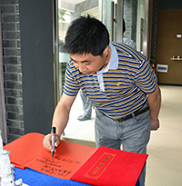 展览现场,院领导和嘉宾们饶有兴致的驻足欣赏作品,就展出作品的艺术风格和部分同学今后的就业方向等话题,与师生们进行了沟通和交流。李新家、郭睦庚、柯昌龙在灯火辉煌的展厅即兴挥毫,依次书写“念去去千里烟波,暮霭沉沉楚天阔”、“祝设计系毕业设计作品展越办越好”、“教育圣地·艺术天堂”等赠言,祝福建筑与设计系和毕业生们拥有广阔的发展前景和更加美好的未来。