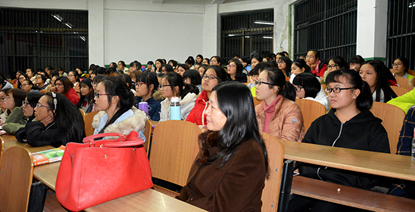许晓艳结合从教30年的经验和感悟,从“纯正的口语”、“良好的记忆力”、“不懈的坚持”、“开阔的知识面”、“扎实的硬件”这5个方面,提出了对师范生的要求期望,希望大家明确目标、树立榜样、刻苦学习、苦练本领,做有理想信念、有道德情操、有扎实知识、有仁爱之心的优秀教师,展示出新一代师范生的技能风采,共同努力让英语师范生成为校园里一道亮丽的风景线。