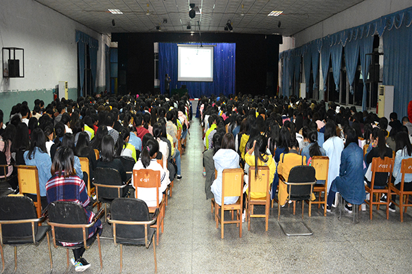 外语系系主任许晓艳与500余名师生聆听报告。