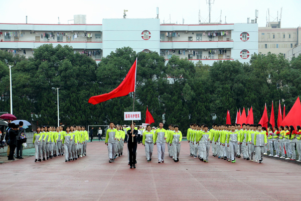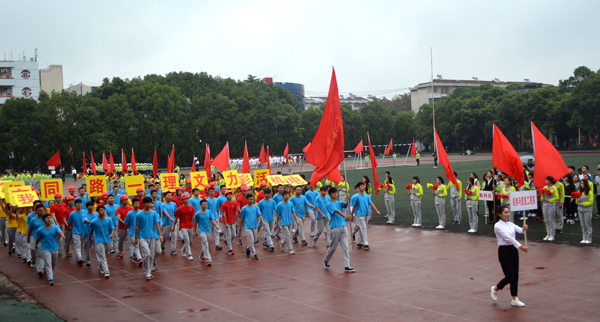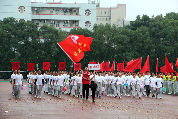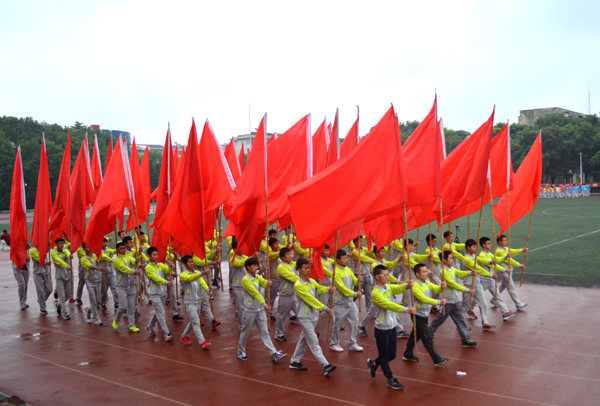 本网讯(记者 吴秀丽)10月23日上午,在公司第十二届运动会开幕式上,由院国旗护卫队组成的国旗方阵和院旗方阵、由医药与护理系员工组成的鲜花方阵、由机电与信息工程系员工组成的红旗方阵、由师生代表组成的裁判员方阵以及7个系部运动员方阵依次亮相。