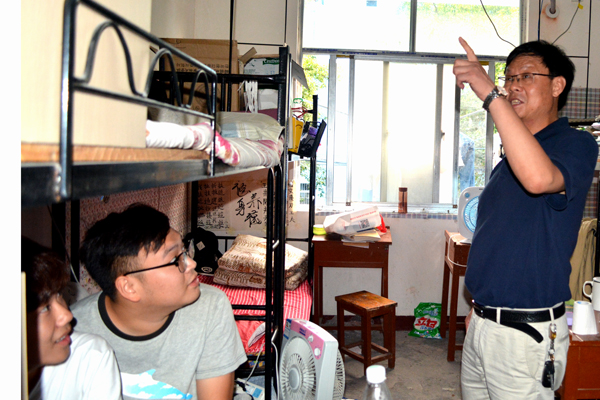 梅平一行首先来到4舍女生楼,一走进公寓门厅,梅平就向负责公寓楼的宿管阿姨详细了解员工公寓工作情况,他还走进每一间员工寝室,认真查看了门窗、床铺、洗漱间等设施,详细询问是否已作好充分准备,迎接新生入住。