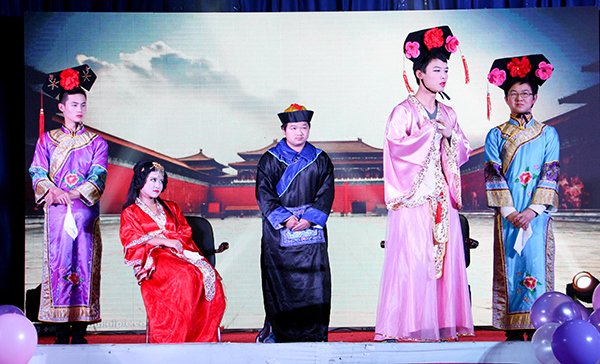 晚会共有17个节目,包括声乐、舞蹈、小品、武术、话剧等节目类型。工商管理系青年教师表演的舞蹈《激扬青春》拉开了晚会大幕,主持人分别带领“青春队”和“活力队”两支演员队伍,进行激烈的节目大比拼。舞蹈《华夏韵》挑战《落花情》,中国武术《我是李小龙》比拼杰克逊的经典舞蹈《Dancing Michael》,小品《如此雷锋》比拼歌曲《Can't take my eyes off you》,葫芦丝伴舞《美丽的金孔雀》挑战小品《后宫新传》……精彩绝伦的节目赢得了观众阵阵热烈的掌声,一轮轮扣人心弦的艺术较量将现场气氛逐步推向高潮。