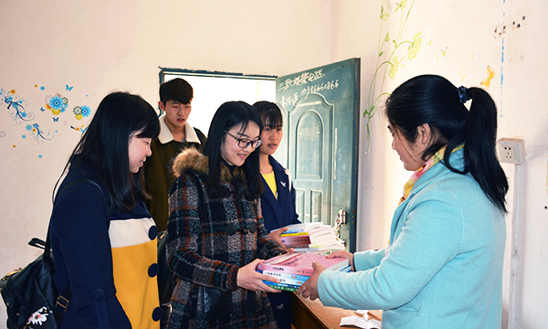 领书啦,同学们乐滋滋的从老师手中接过新教材。