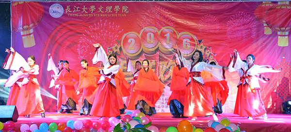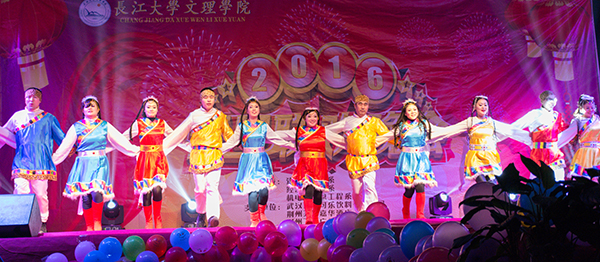 校园里洋溢着民族团结的和谐氛围,万楚军、鄢静等教师表演的藏族舞《扎西德勒》,让观众在新年的喜悦中,近距离感受到少数民族的文化魅力;中国功夫、滑稽小品、炫酷街舞,深受青年学子喜爱,青春的激情,在这里飞扬。