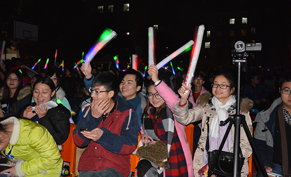 本网讯(记者 刘磊)一元欣复始,万象喜更新。12月29日晚,备受期待的西校区2016年元旦晚会在该校区篮球场如期举行。当晚,歌声嘹亮,人海欢腾,荧光棒、欢呼声与掌声此起彼伏。