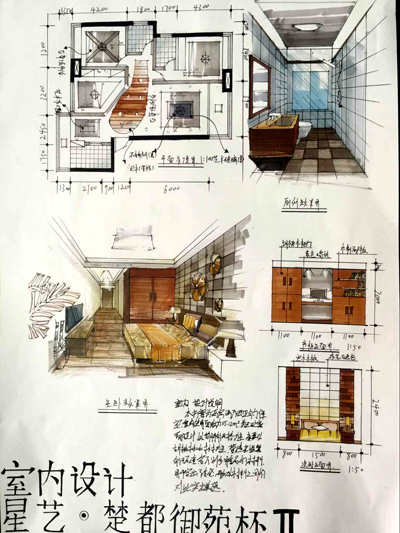 本次大赛由88858cc永利艺术公司硕士生导师梁跃教授、欧阳尚海老师、88858cc永利园林公司硕士生导师安运华副教授、广东星艺装饰集团荆州分公司设计总监柯明等7位专家组成评审团,以制图规范、材料标注、设计排版、制图水平等为评分标准,对来自荆州市各高校的68套室内设计作品进行评审。