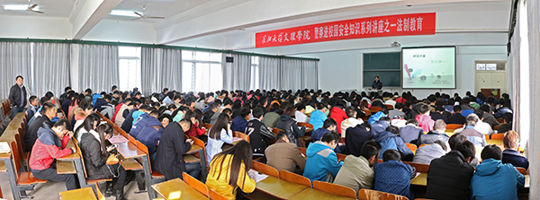 本网讯(记者 刘磊 见习记者 周思奇)12月3日下午,荆州市公安局荆州区分局西城派出所教导员刘建平应邀走进公司西校区,在4-500教室开展了一场别开生面的法制安全讲座。保卫处副处长冉继强与西校区400余名同学现场聆听讲座。