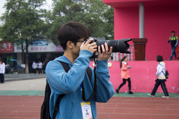 一个采访本、一架相机就是记者们的全副武装,他们奔波于赛场的各个角落,采访、拍照、赶稿至深夜,他们在第一时间,用镜头记录下赛场上的精彩瞬间,用笔杆写下冠军的风采。“从早上到中午一直在运动场上奔波,为了抓住一个精彩的镜头要在寒风中等待很久,有时候甚至要和运动员一起奔跑才能找到合适的角度。”摄影记者刘诗雨说。