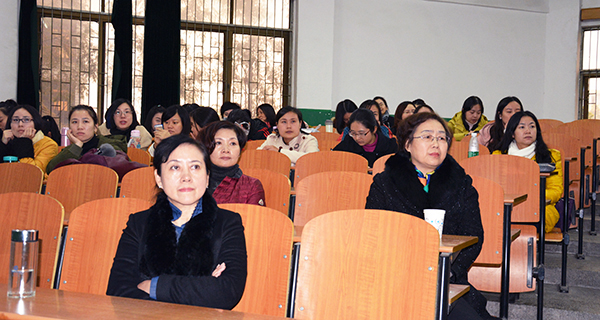 李琴(二排右)与全体女教职工聆听讲座