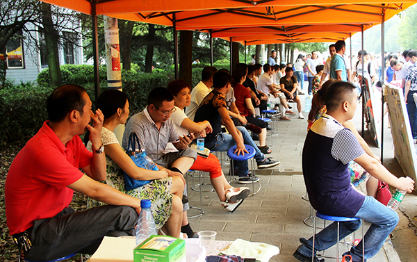 家长在休息区等待员工报名