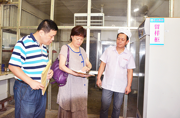 湖北省教育厅检查组成员检查员工食堂食品安全卫生情况