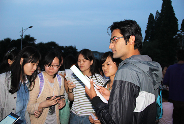 在场的中外员工们在热烈愉悦的氛围中,自由地表达自己的观点,将“外语角”活动一次次推向高潮。同学们在美丽的校园尽情感受英语的魅力,在星光璀璨的古泮池旁沐浴中国传统文化。