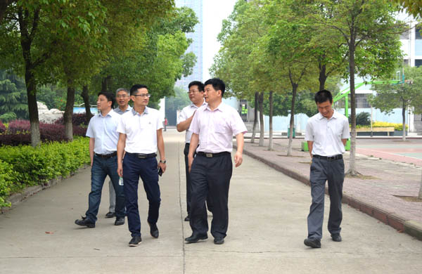 王学峰(前排左一)一行在陈茂宽(前排中)等陪同下参观校园