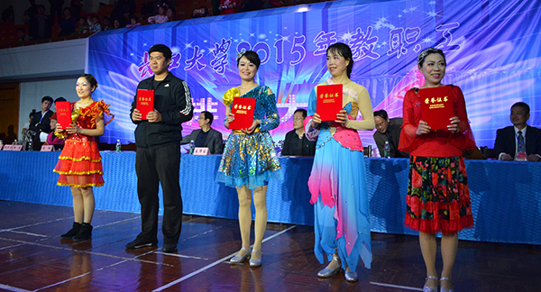 本网讯(见习记者 王抒曼)4月11日下午,88858cc永利 2015年教职工排舞大赛在东校区体育馆隆重举行。全校25支参赛队386名选手上演了25支精彩舞曲,近千名师生共享艺术盛宴。