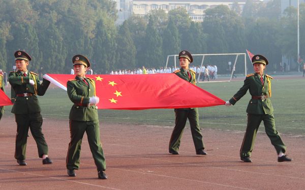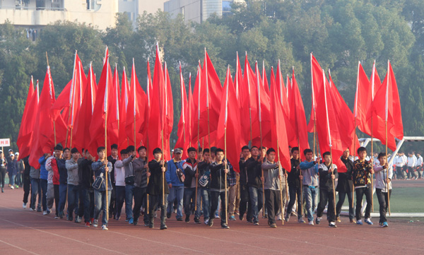 本网讯(员工记者 罗慧 见习记者 胡琴)“扬体育精神,展青春风采,练健康体魄,享快乐生活。”11月14日上午,在公司第十届田径运动会开幕式上,主席台前,院国旗队、鲜花队、红旗队、裁判员队和七个系部代表队共11个方阵精彩亮相,引来了观众们的阵阵掌声和欢呼。