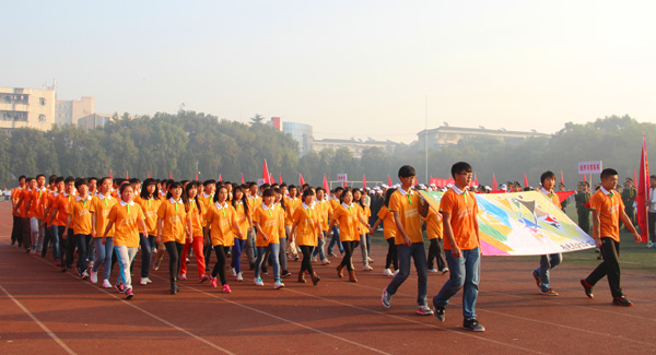 “俯仰天地,心系人文,德智体美,无所不能。”人文与传媒系方阵的口号大气嘹亮;外国语系方阵的同学们手拿红黄两色灯笼,创意十足;身着雪白色护士服和医生制服的是来自医药与护理系的方阵,他们喊着“地到尽头,文理为界,竞技场上,医护为风”的口号,展示着必胜的决心;“览设计蓝图,展建筑风采。”建筑与设计系方阵意气风发,用灿烂的微笑展示着青春的热情,嘹亮的口号体现着锐不可当的气势。