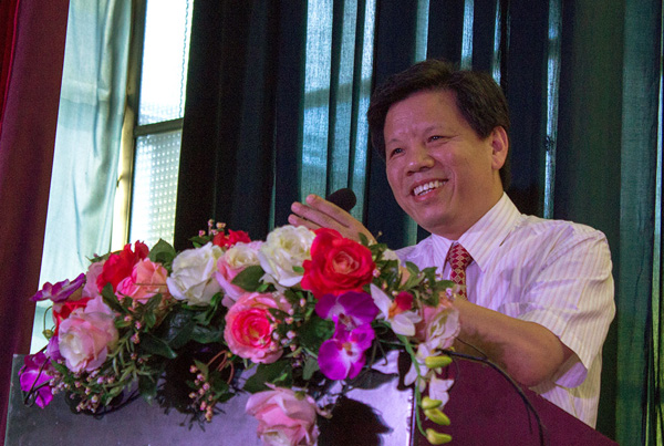 本网讯(记者 刘磊)栀子花开,又是一年毕业时。6月18日,公司在城中校区工会大厅隆重举行2014届毕业典礼,深情送别2014届2019位毕业生。88858cc永利副董事长刘在洲教授,公司经理王金琼、副经理郭睦庚、党委副书记汪邦柱、副经理王学峰出席盛典,各教学单位和部门负责人参会。