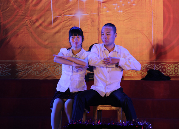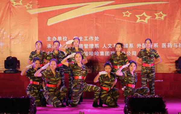 由八位身着淡紫色碎花裙的女生表演的古典舞《咏春》,仿佛驱散了冬日的严寒,为观众带来春天般的温暖;民族舞蹈《龙船调》,两位演员自然纯正的表演掀起了一阵“最炫民族风”;诗歌朗诵《中国人 不跪的人》,六位朗诵者时而气势激扬如黄河奔涌,时而深情温婉如小桥流水,伴随着完美的和声,台下掌声经久不息……而后,激情四射的爵士舞、机械舞,青春洋溢的校园歌曲《同桌的你》,幽默诙谐的相声小品《我的大学》、《新白蛇传》等轮番登场,舞台下观众的热情也一次次被点燃,笑声不绝,掌声不断。