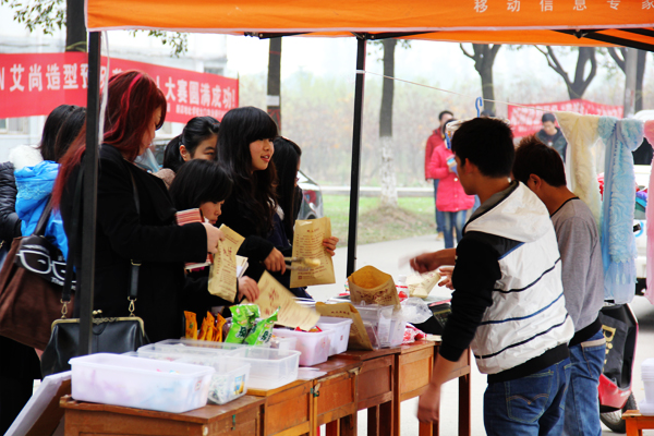 本网讯(员工记者 吕浩 见习记者吴童洁 周安龙)“百味园牛奶清凉糖,颗颗香浓,意犹未尽”、“伊利全系列产品疯狂让利减价促销”、“云南民族风情佩饰,松石手链、青布围巾、碎叶银簪……”11月27日,公司第七届社团文化节系列活动之“营销达人”大赛在西校区风华园主干道拉开帷幕。