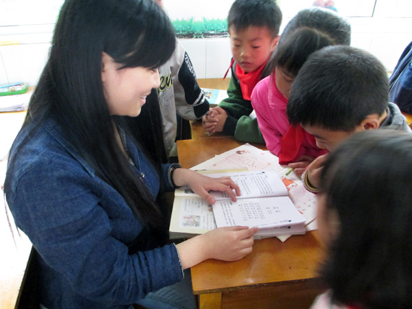 推开教室门,孩子们洋溢浪漫童真的笑脸,就像春天里的阳光一般,冲破了这雨天的阴仄与沉寂,迅速地感染了志愿者,大家很快熟悉起来。