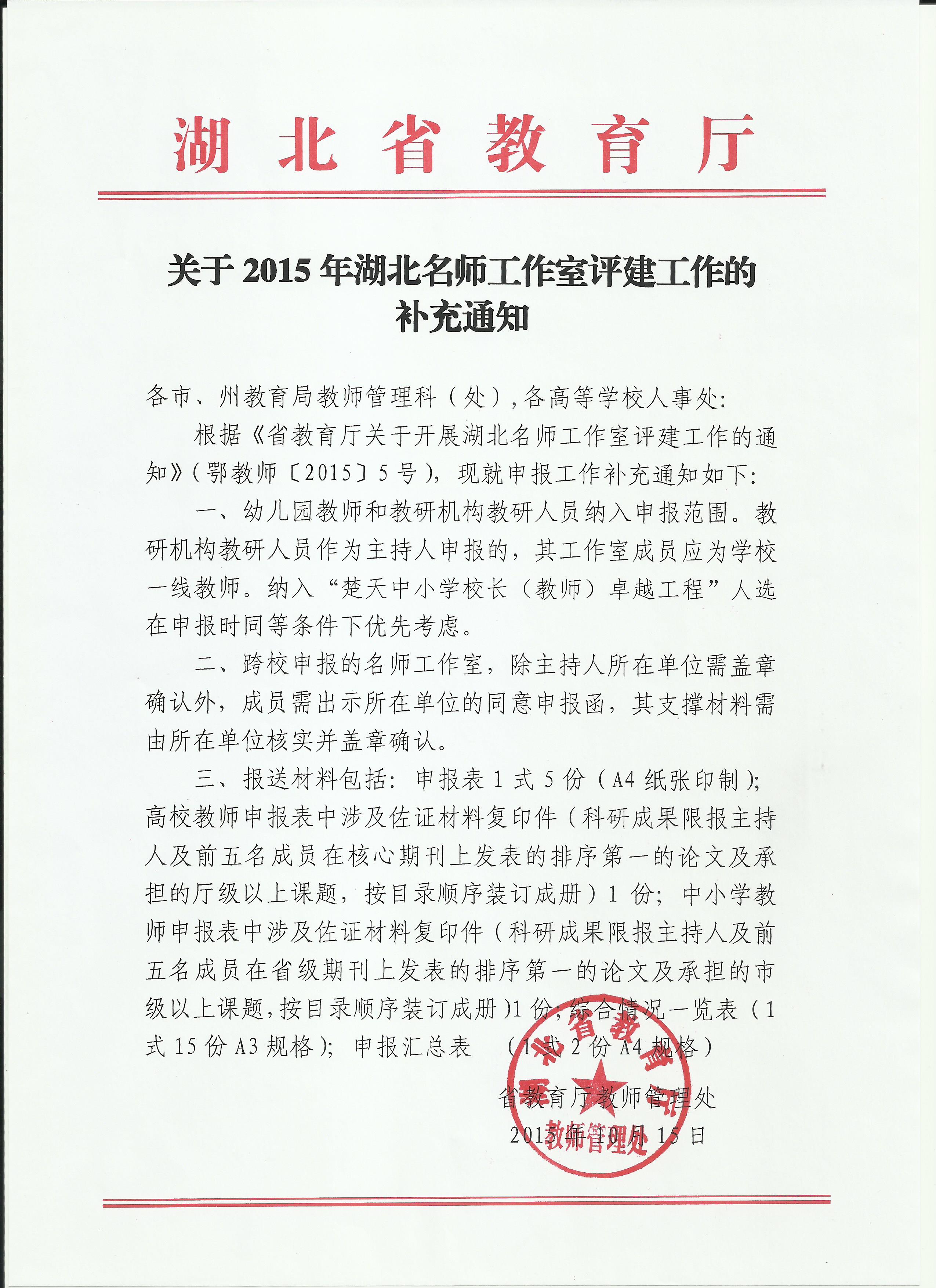 3.省教育厅办公室关于开展2019“湖北名师工作室”评选工作的通知