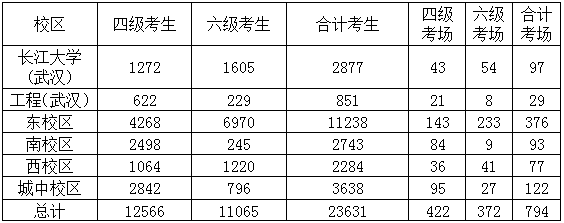 2.考试规模:23631人,其中四级12566人,六级11065人。
