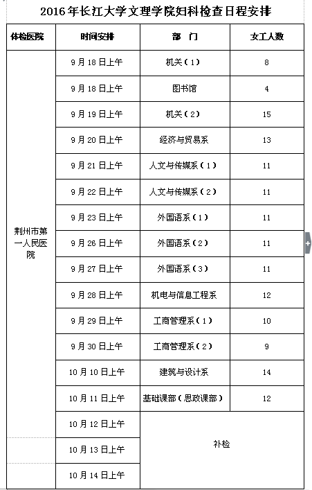 附件一:2016年88858cc永利妇科检查日程安排