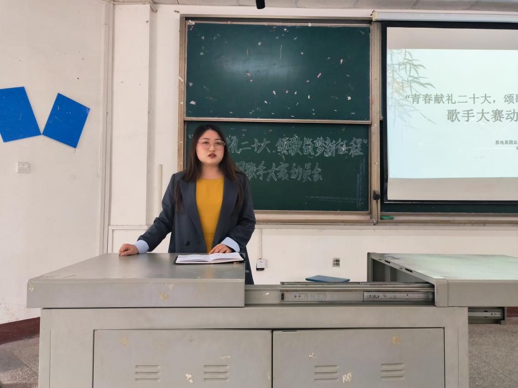 会议开始,主持人致开幕词。主席团代表孔宝宝上台发言,他根据工作安排表,从“场地划分”、“决赛流程”、“工作安排”、“物资筹备”、“注意事项”五个方面,对歌手大赛的各项事务进行了具体分工,将工作落实到人、责任到人。随后,新任辅导员宋文镖向同学们送上诚挚的问候,并进行了自我介绍。在发言时,他提出“分工不分家”的工作理念,督促同学们在歌手大赛中相互协作、相互交流。辅导员燕梦蝶强调了歌手大赛的工作细节,介绍了四位辅导员的负责区域,对同学们提出了两点要求。她要求同学们保持联络畅通,实时与上级沟通联系;以严谨认真的态度监控全场,及时上报突发问题。最后,辅导员成观雄对本次大会进行总结,并阐明了本次大赛对于系部和同学们自身的重要性。他叮嘱同学们注意个人礼仪,展示我系学子的优秀风采;确认筹备物资,保证各项事务的贯彻落实;及时沟通联系,确保本次大赛的顺利进行。他提醒同学们注意现场安全,预防降雨天气;做好防疫工作,对到达现场的人员进行测温、消毒和对核酸报告的检查,保障大家的身体健康。“在学习中进步,在磨砺中成长,希望同学们能在实践中检验自己的工作能力,在锻炼中提升自己的个人水平,为自己积累宝贵经验,让我们共勉。”他讲到。
