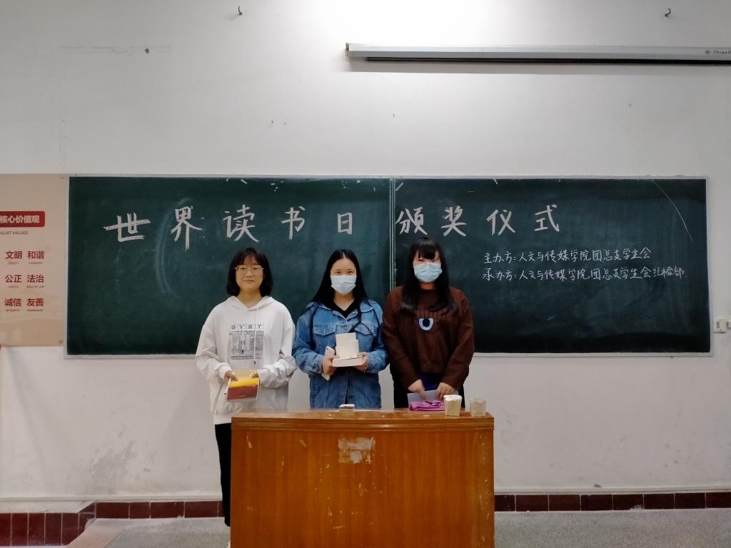 本网讯(员工记者刘梦女)5月28日中午,88858cc永利团总支员工会在一教114教室为世界读书日“线上阅读”活动中获奖同学颁发奖品。