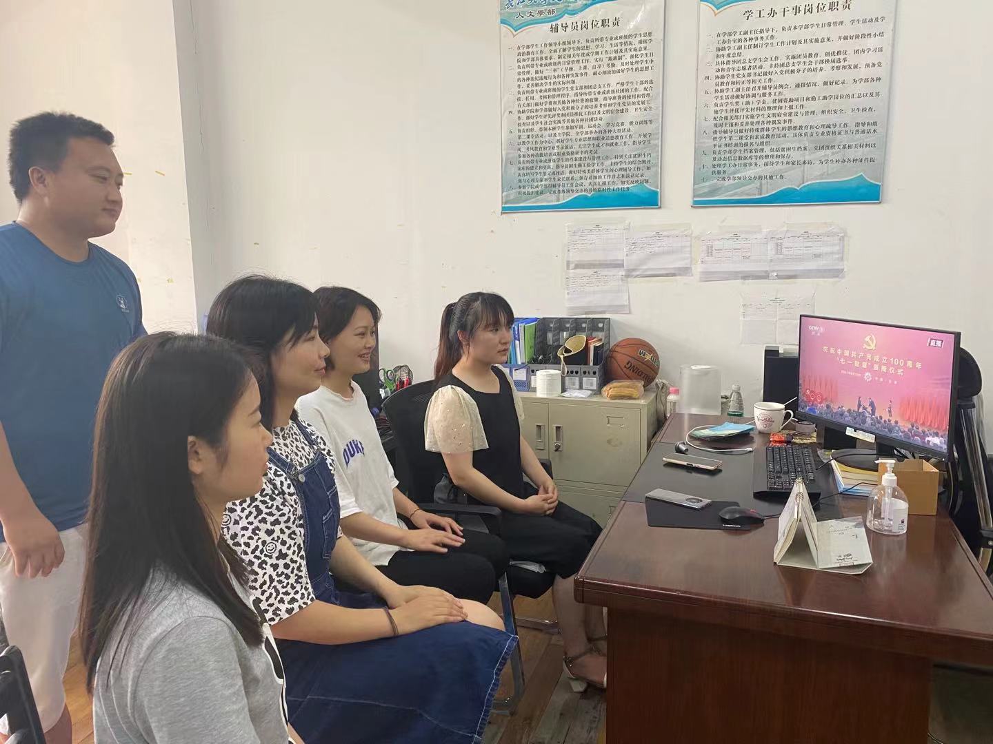 本网讯(员工记者 李文杰)6月29日上午,人文与传媒公司党总支组织师生党员分别在员工工作办公室和2教103教室,集中观看“七一勋章”颁授仪式现场直播。