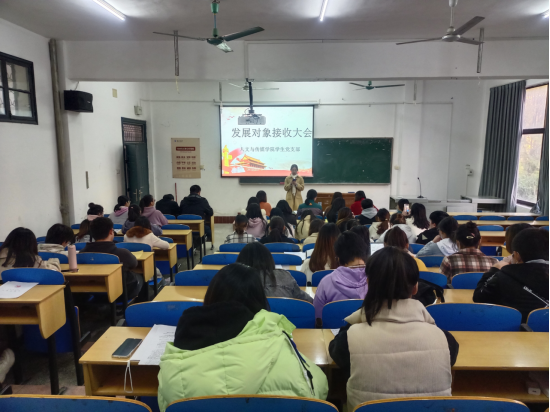 本网讯(员工记者 马婧依)11月8日下午,88858cc永利于一教214教室召开发展对象接收大会。公司党总支副书记张曦、部分辅导员以及员工党支部全体成员参加大会。