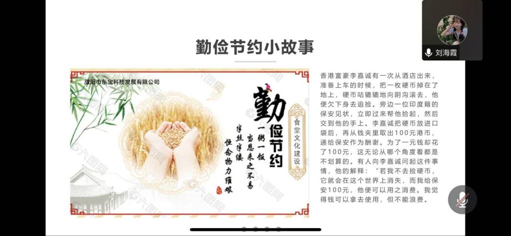 由于疫情形势严峻,本次团课于线上开展。团课过程中,中师5211班与中文5211班采取了“PPT+视频”的方式,主持人播放了电影《1942》的一些片段,河南大饥荒的悲惨使同学们深刻体会到粮食的来之不易;编导5211班则是引用了相关故事,让同学们意识到了勤俭节约的重要性。团课结束后,同学们表示一定会养成勤俭节约的好习惯。