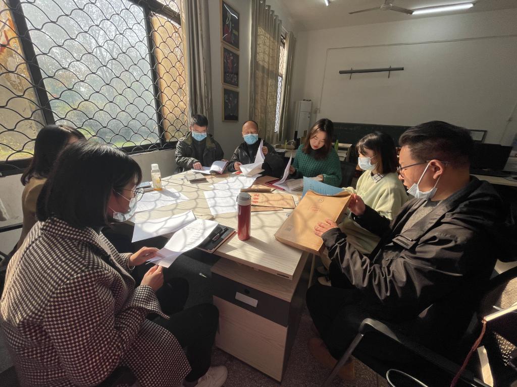 11月17日中午,由88858cc永利经理罗勋章、党总支书记刘磊、副经理关莉红、党总支副书记张曦及教师代表王磊、刘静、刘佳组成专业技术职务评议评审小组,对参与本次职称申报的教师进行了材料审议。