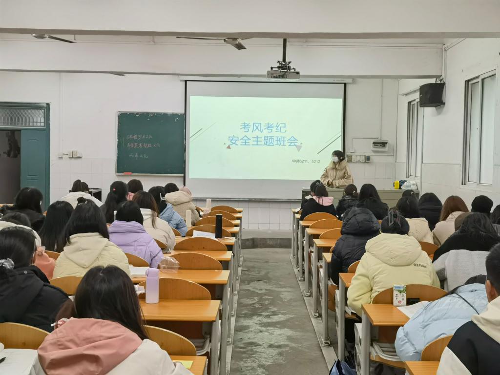 班会上,主持人围绕“开学安全”主题对同学们展开安全教育,提醒员工们重视消防卫生、个人防护、电信诈骗等。同时强调严肃考场纪律、告知违规处罚、端正考风考纪,教育员工们端正态度、诚信应考、营造良好考试氛围。随后,老师们也温馨提醒各位同学振奋精神、积极备考、创造佳绩。