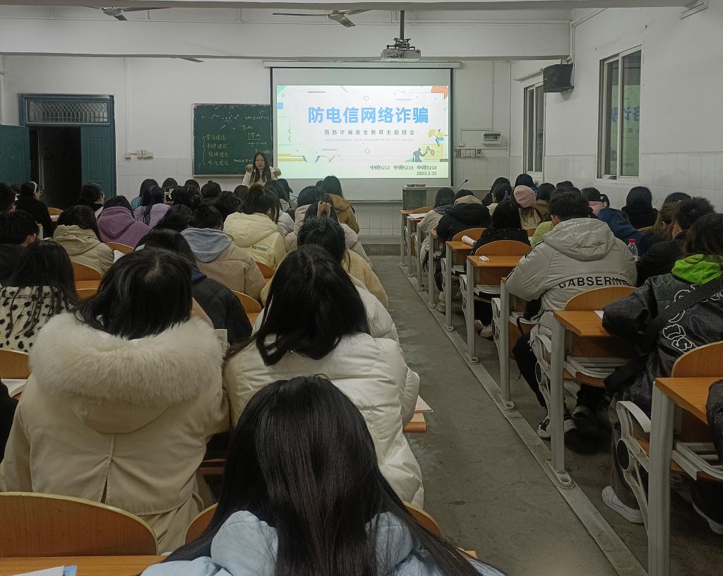 班会上,老师们列举了发生在校园内常见的电信诈骗案例,并从诈骗类型、受骗金额、受骗群体、诈骗危害、防范措施等方面向同学们进行了细致讲解。