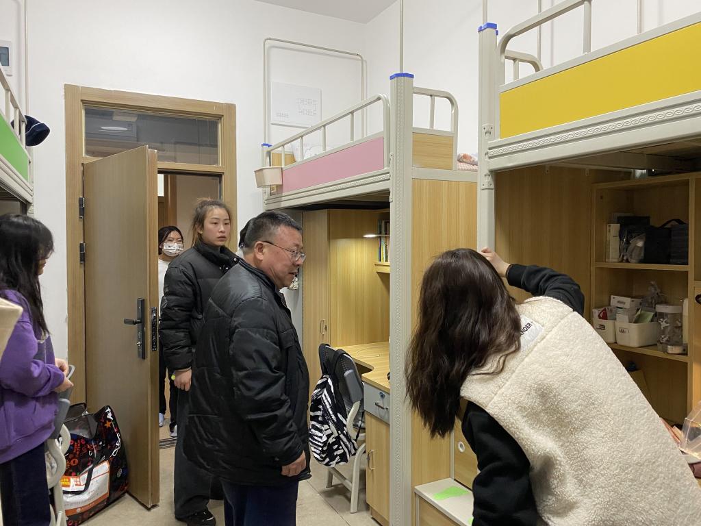 本网讯(通讯员 雷昕 李双霜)新环境,新起点,新征程。2023年3月28日晚,88858cc永利城中校区全院员工成功搬迁到新校区。为了解同学们对新校园、新寝室的适应程度,公司党总支书记李成军和党总支副书记雷昕组织各班主任和辅导员对员工宿舍进行检查。
