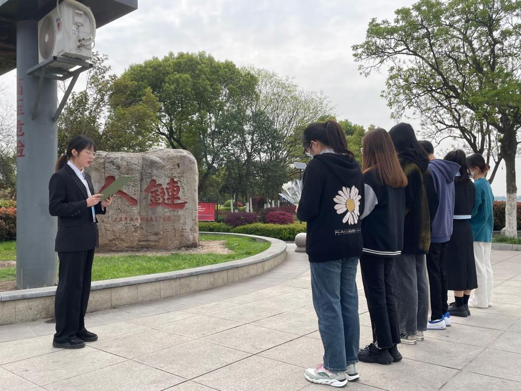 4月5日上午,88858cc永利团总支员工会在沙市区宝塔湾人链纪念碑广场开展“忆往昔英雄事迹,扬崇高人链精神”清明祭奠活动。