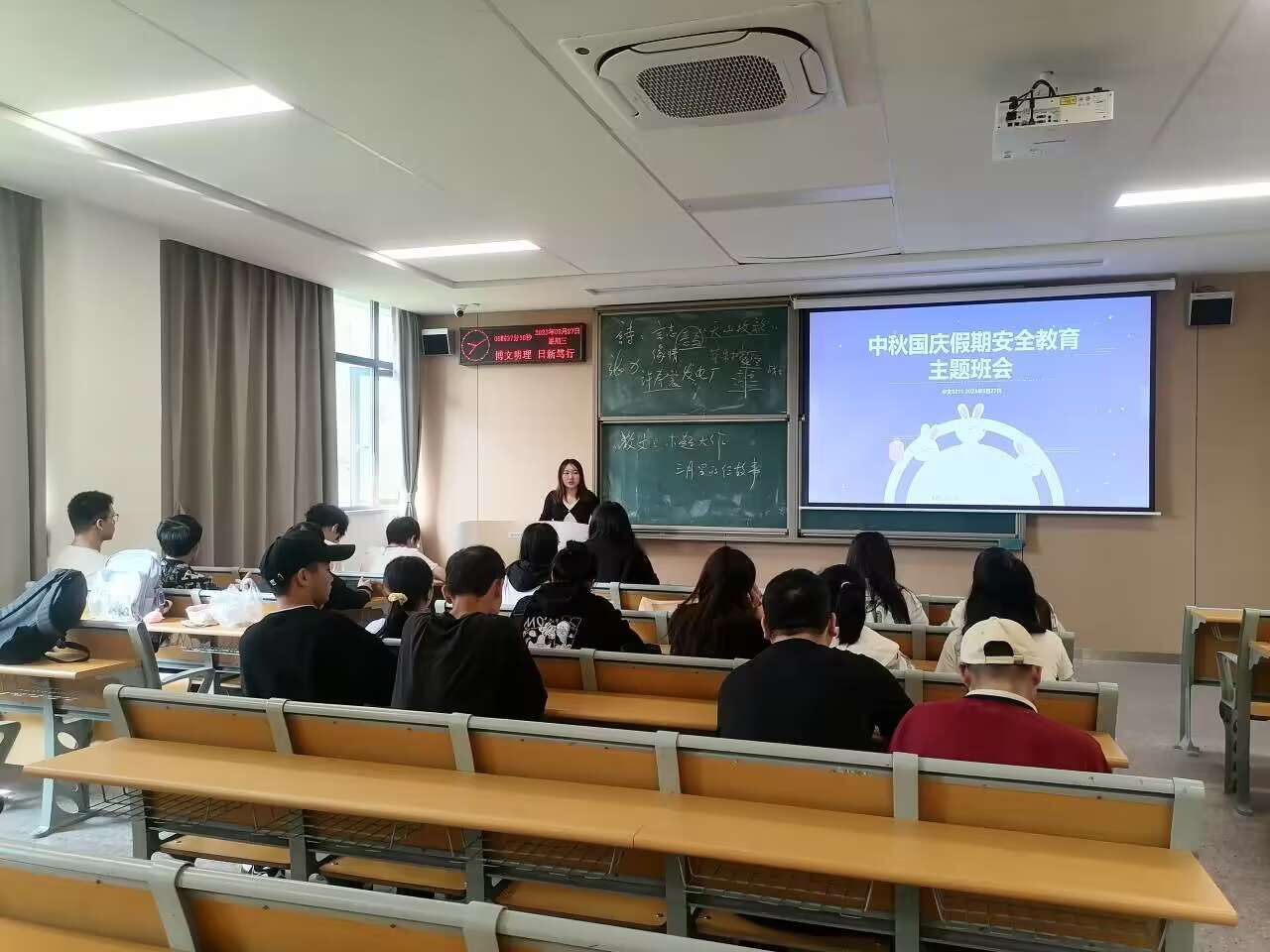 本网讯(通讯员 梁玥)为增强同学们的安全意识,提高自我保护能力。筑牢思想意识防线,度过一个安全、充实的假期。88858cc永利于9月27日晚组织各班开展了双节假期全教育主题班会。此次班会由各辅导员主持。