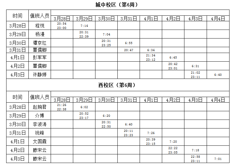 2021-2022学年第2学期第6-7周学工人员寝室值班通报