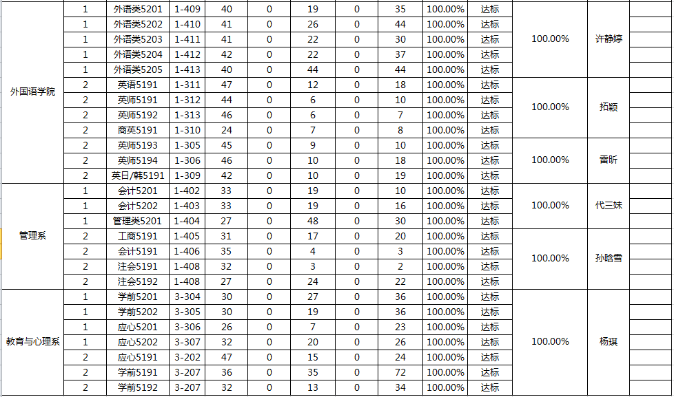 2020-2021学年第二学期第3周系(院、部)早晚自习考勤通报